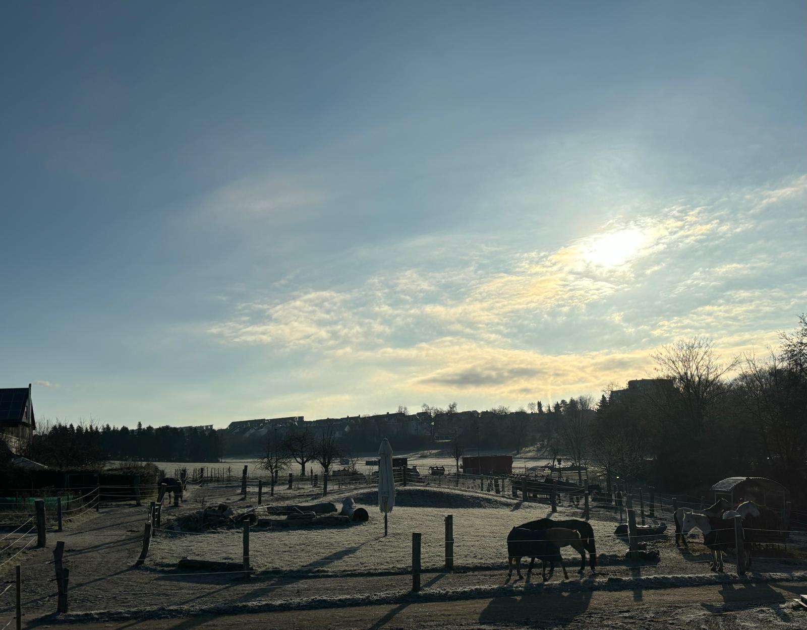 Die Trail-Haltung auf unserem Hof ist ein Konzept, das sich an den natürlichen Lebensbedingungen von Wildpferden orientiert. Anstatt „nur“ auf einer Koppel oder einem Paddock zu stehen, bewegen sich die Pferde entlang eines angelegten Pfades (Trail), der verschiedene Stationen bietet, darunter einen Wälzplatz, einen Kratzbaum und eine Futterstelle. Diese Haltung fördert die natürliche Bewegung und das Wohlbefinden der Pferde.